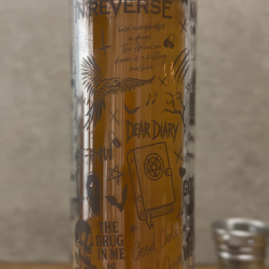 Diese von FiR inspirierte Tea Bottle ist das perfekte Accessoire für alle, die Ronnie Radke und seine Musik feiern! Verziert mit ikonischen Symbolen, Zitaten und kraftvollen Illustrationen aus den bekanntesten Songs wie „Losing My Life“, „The Drug in Me is You“ oder „Zombified“, bringt dieser Becher den rebellischen, düsteren und provokanten Stil der Band direkt in deinen Alltag. Egal ob zuhause, im Büro oder unterwegs – mit diesem Tumbler zeigst du jedem, was du hörst und wofür du stehst.