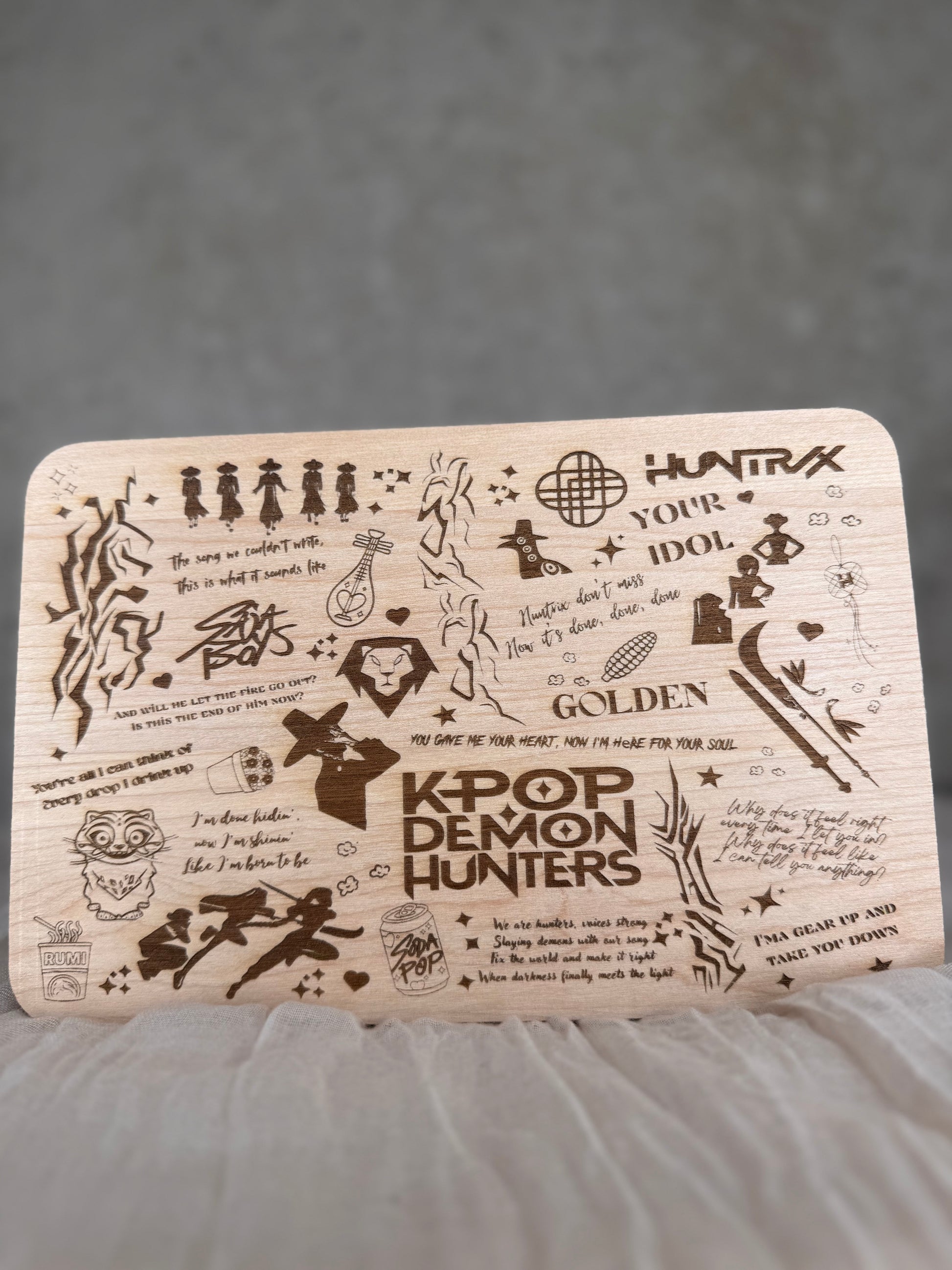 Unser von KPDH inspiriertes Frühstücksbrettchen bringt die geheimnisvolle, kraftvolle und energiegeladene Ästhetik direkt auf deinen Tisch. Verziert mit ikonischen Symbolen, mystischen Zitaten und detailreichen Illustrationen aus der Welt der Demon Hunters, ist dieses Brettchen weit mehr als ein Küchen-Accessoire – es ist ein echtes Statement für alle, die K-POP lieben und dunkle Vibes feiern.