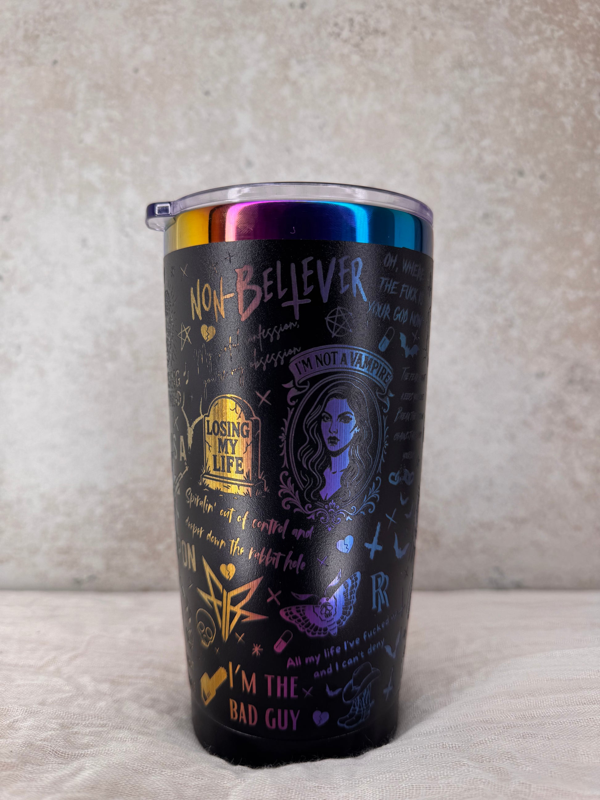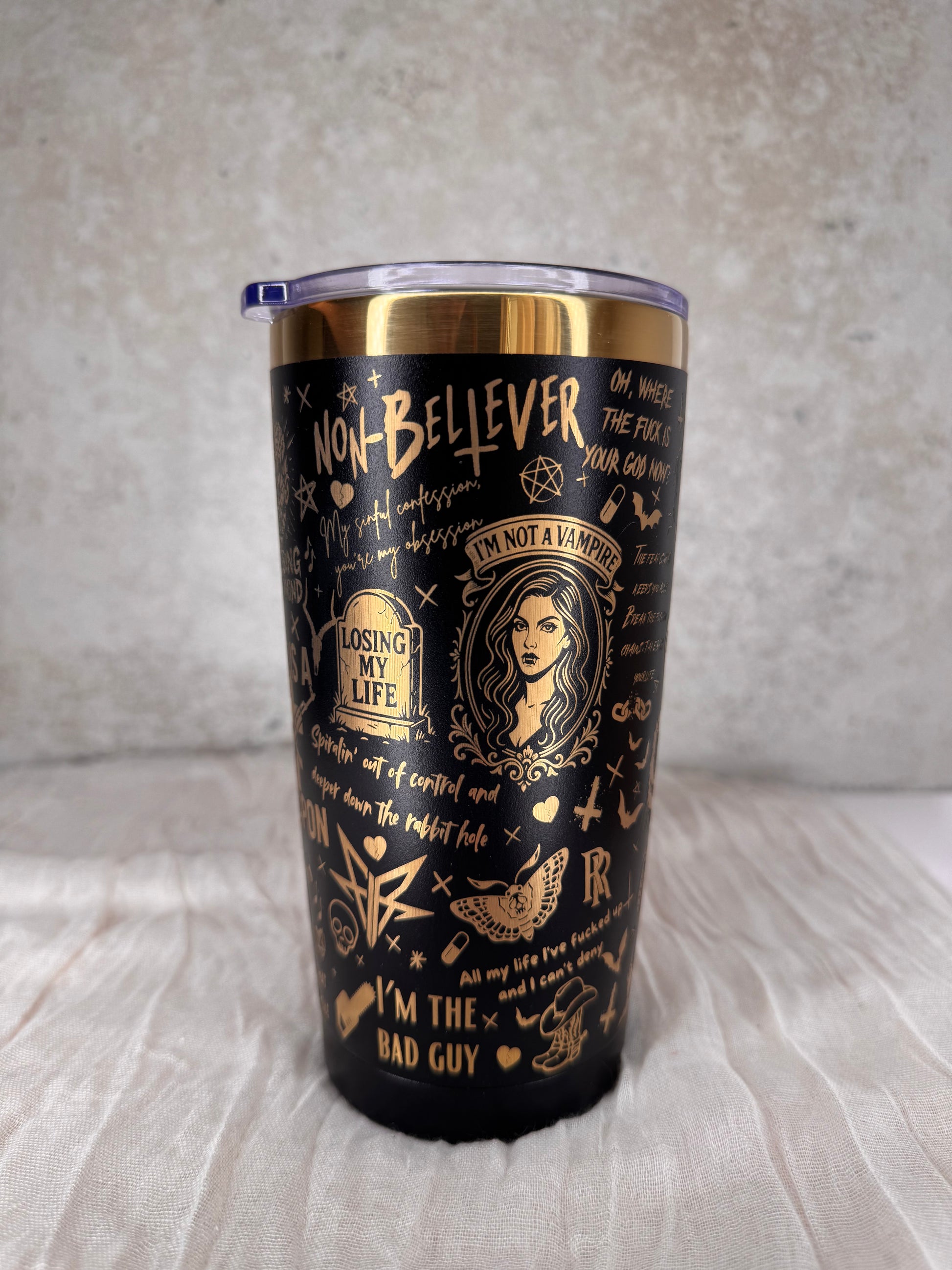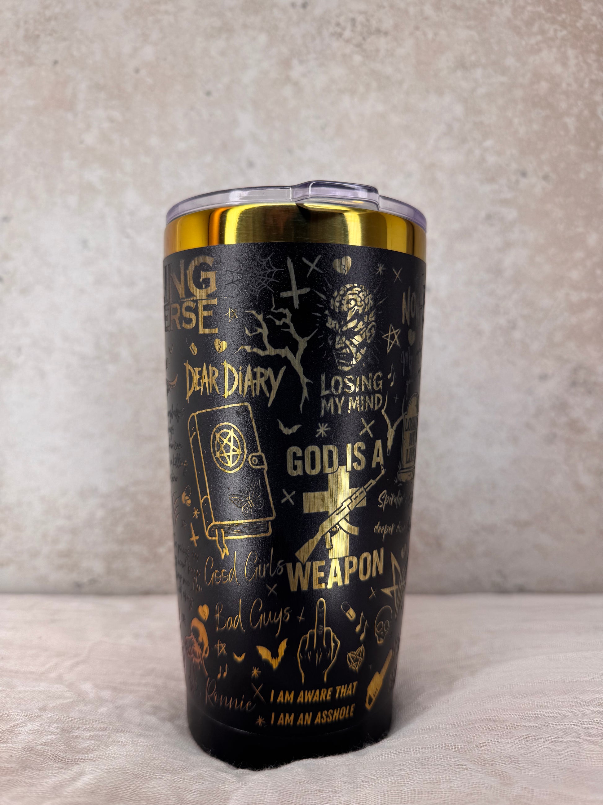 Der von FIR inspirierte Coffee Cup ist das perfekte Accessoire für alle, die Ronnie Radke und seine Musik feiern! Verziert mit ikonischen Symbolen, Zitaten und kraftvollen Illustrationen aus den bekanntesten Songs wie „Losing My Life“, „The Drug in Me is You“ oder „Zombified“, bringt dieser Becher den rebellischen, düsteren und provokanten Stil der Band direkt in deinen Alltag. Egal ob zuhause, im Büro oder unterwegs – mit diesem Coffee Cup zeigst du jedem, was du hörst und wofür du stehst.