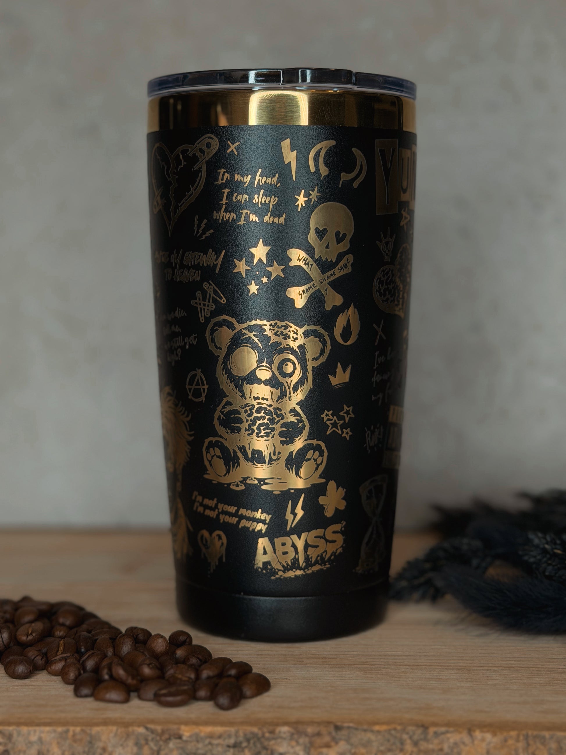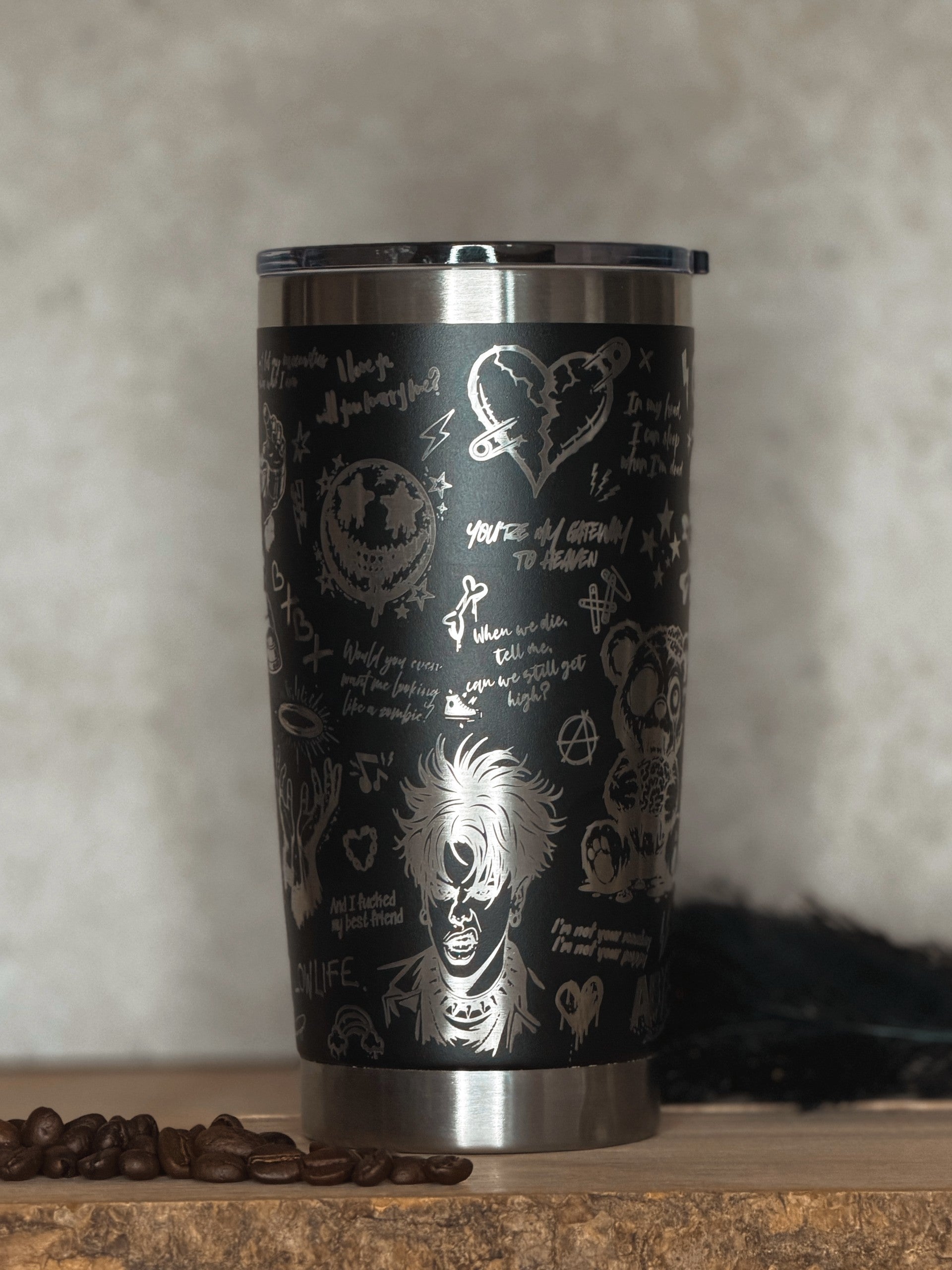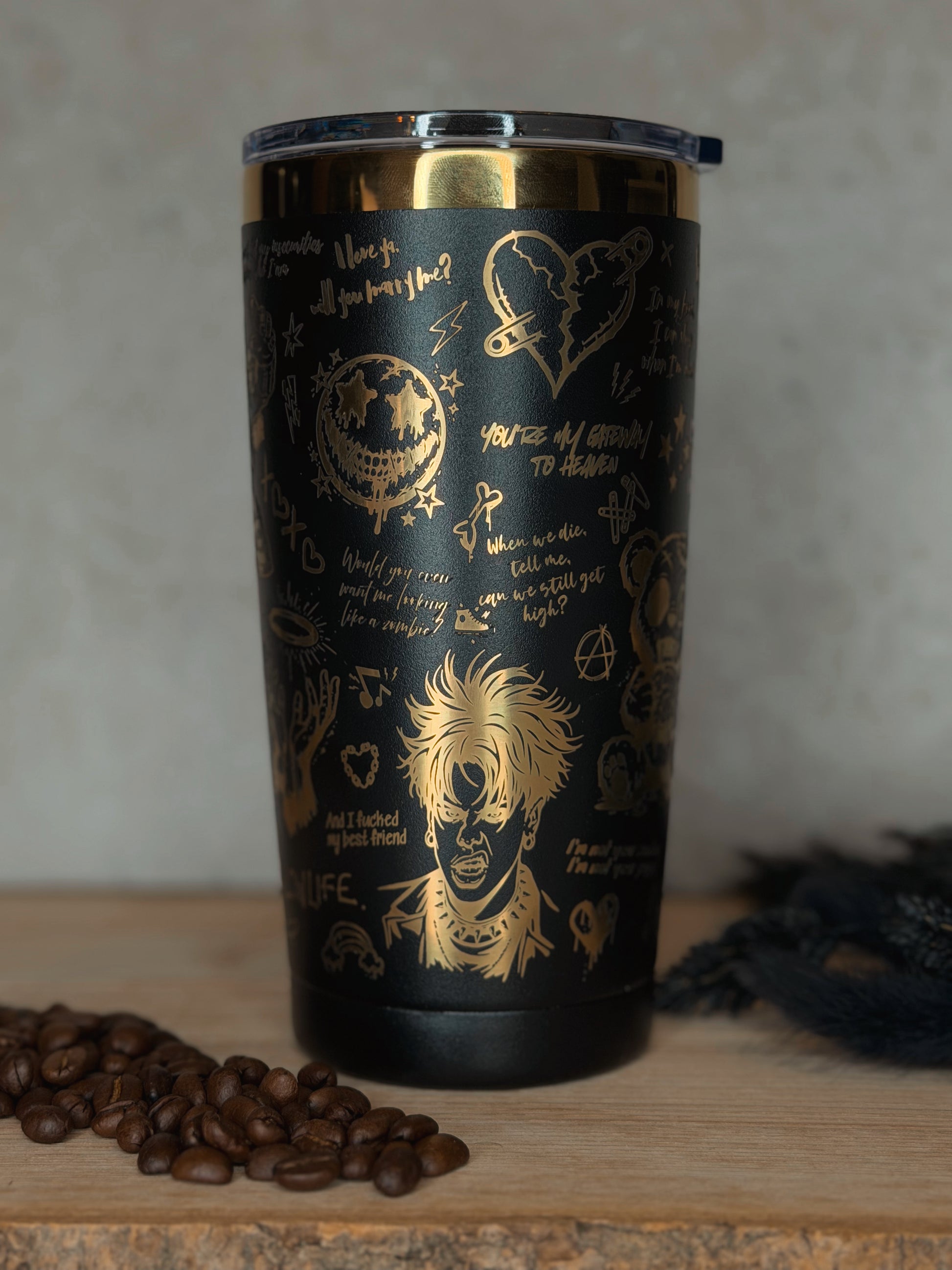 Der von YB inspirierte Coffee Cup ist ein absolutes Must have für alle, die den rebellischen, emotional aufgeladenen und ungeschönten Vibe lieben. Verziert mit ikonischen Symbolen, markanten Schriftzügen und ausdrucksstarken Illustrationen, fängt dieser Becher die rohe Energie der YB Ästhetik ein zwischen Chaos, Herzschmerz und kompromissloser Attitüde.